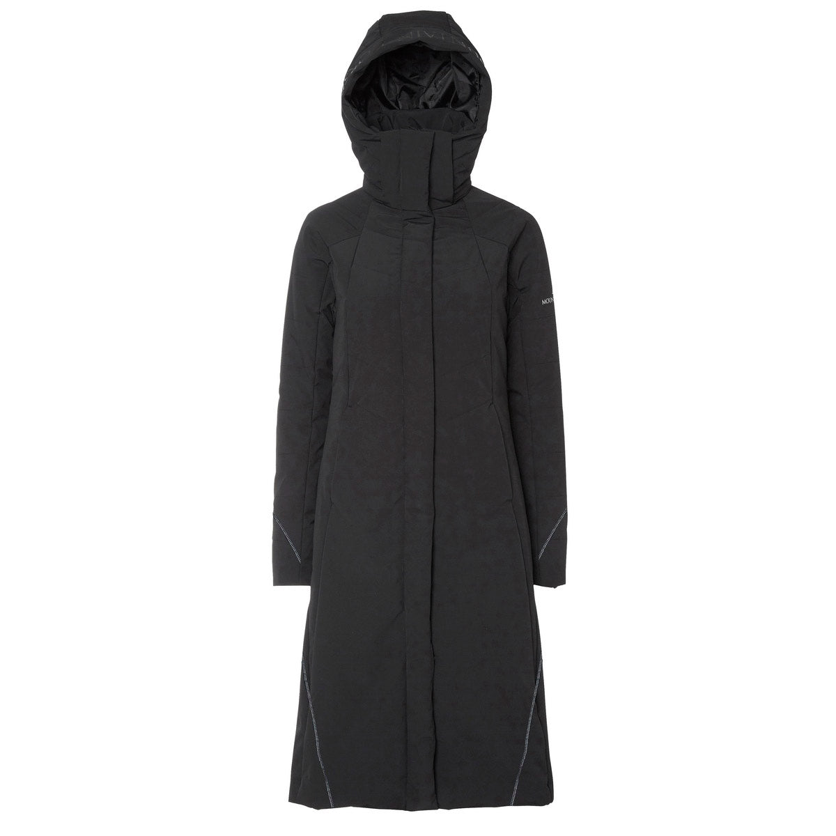 Abrigo acolchado ligero y funcional, resistente al agua y al viento gracias a su resistente tejido W.P.S 5000 con alta transpirabilidad y a sus costuras totalmente selladas. Forro con suave tacto de plumón. Diseño entallado y femenino con correas ajustables en el interior. Cuenta con una amplia abertura en la espalda, ajustable con broches de presión, que permite montar cómodamente. Se cierra frontalmente con cremallera YKK de 2 direcciones protegida por una solapa. Diseñado con bolsillos delanteros con cremallera y forro de poliéster contra la palma de la mano, bolsillo interior con cremallera y bolsillo interior de malla para guantes, etc.. Sus mangas precurvadas y sus puños interiores elásticos en la parte inferior de la manga, proporcionan comodidad en los movimientos. Presenta detalles reflectantes en la parte delantera, en la espalda y en las mangas y el logotipo MH reflectante en la manga izquierda. Cuenta con capucha desmontable y ajustable con el logotipo MH de silicona en el borde de la capucha.