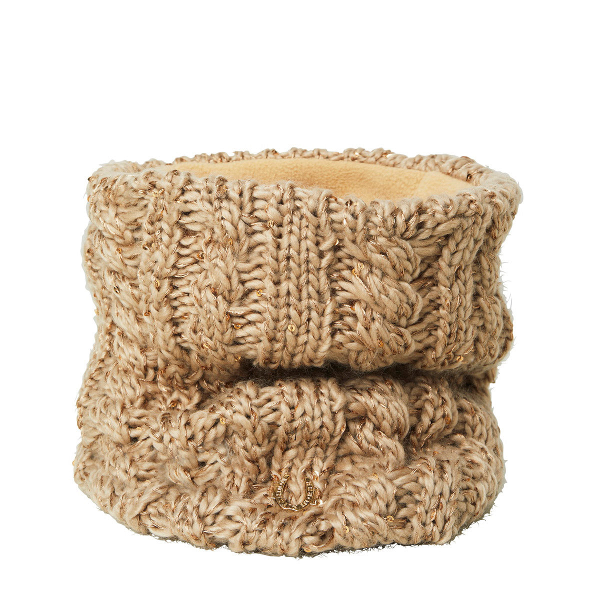 Moderna Braga de cuello de punto de hilo con pequeñas lentejuelas y forro polar interior que proporciona mayor comodidad. Confeccionada con hilo de alta calidad, ofrece una sensación suave y cálida y un look actual. Muestra la elegante Insignia de herradura de MH en la parte delantera. Lavable a máquina.