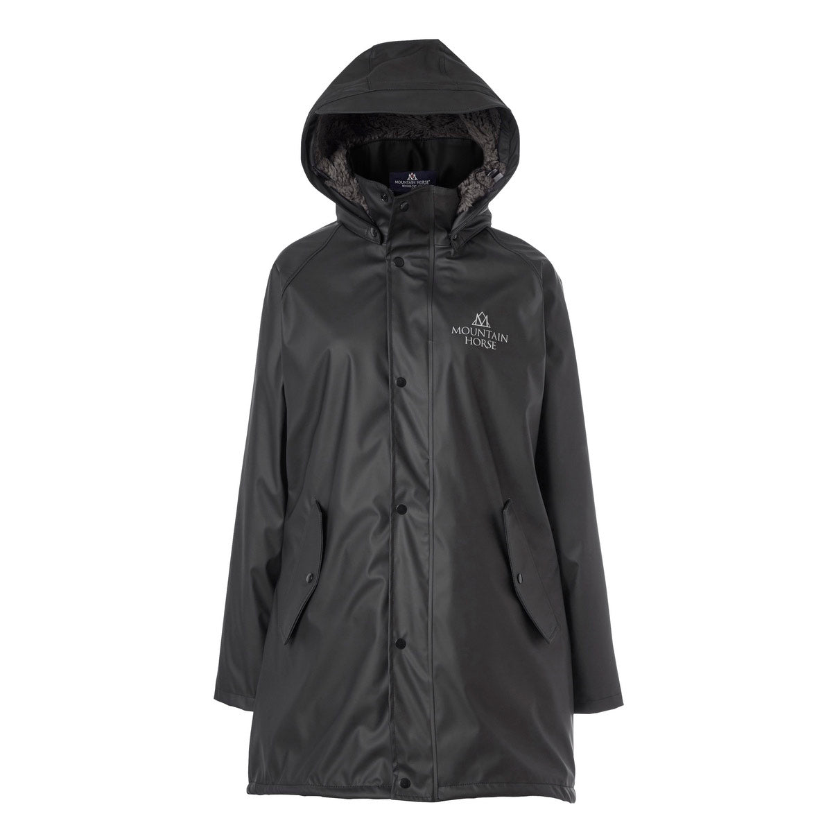 Chubasquero totalmente impermeable con costuras selladas, con un interior forrado con un suave y acogedor tejido de pelo sintético en color a juego. Cuenta con amplios bolsillos delanteros cerrados por solapas, abertura en la espalda con inserción de tejido de PU y cierre a presión que permite montar con comodidad y detalles reflectantes. Se cierra con cremallera central delantera de 2 direcciones, con detalles reflectantes en los tiradores. La cremallera está protegida por una solapa ancha frontal con cierres a presión. Diseñada con mangas raglán cuya abertura es ajustable. Dispone de capucha desmontable y ajustable. Exhibe el logotipo MH reflectante en el pecho y en la zona de la cintura.