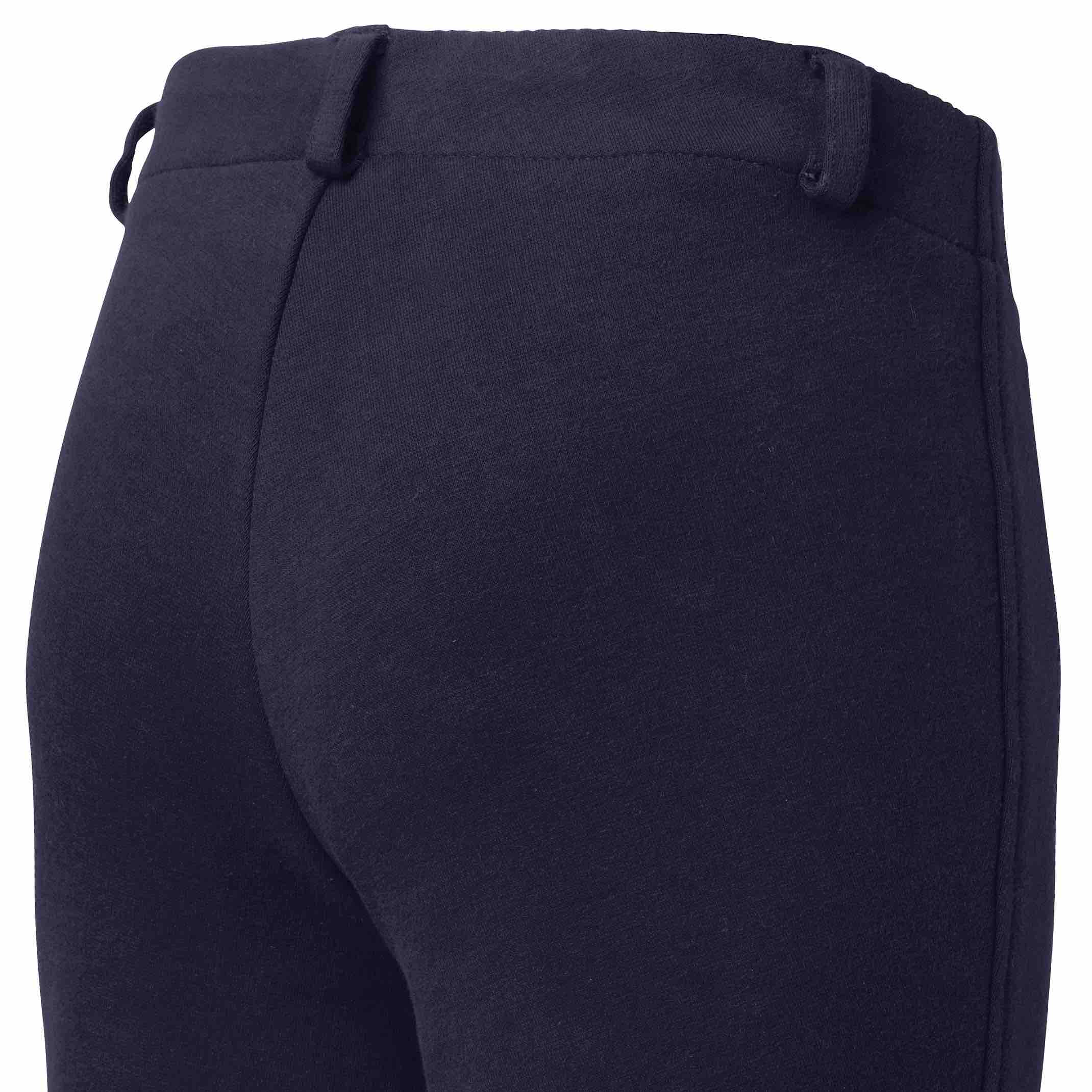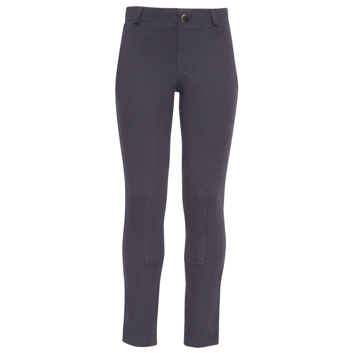 Leggings de equitación Junior con refuerzo en la rodilla. Diseñados como una malla deportiva, sin cierre, con bragueta y broche de presión falsos, son perfectos para el jinete principiante. Confeccionados con tejido de algodón/elastano de fácil cuidado y una cómoda cintura elástica interior. Cuenta con un bolsillo secreto situado en el interior del pantalón debajo de la cintura y trabillas para el cinturón alrededor de la cintura. Para facilitar su colocación, los extremos inferiores disponen de costuras flexibles.